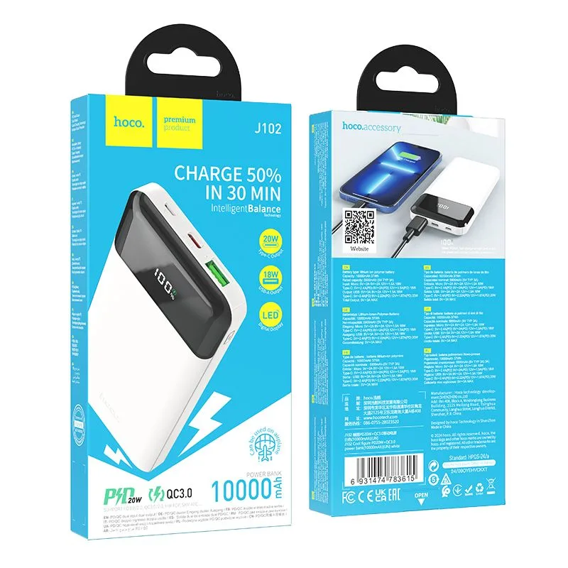 Power Bank Hoco 10000mAh J102 “Cool figure” PD20W+QC3.0 bianco